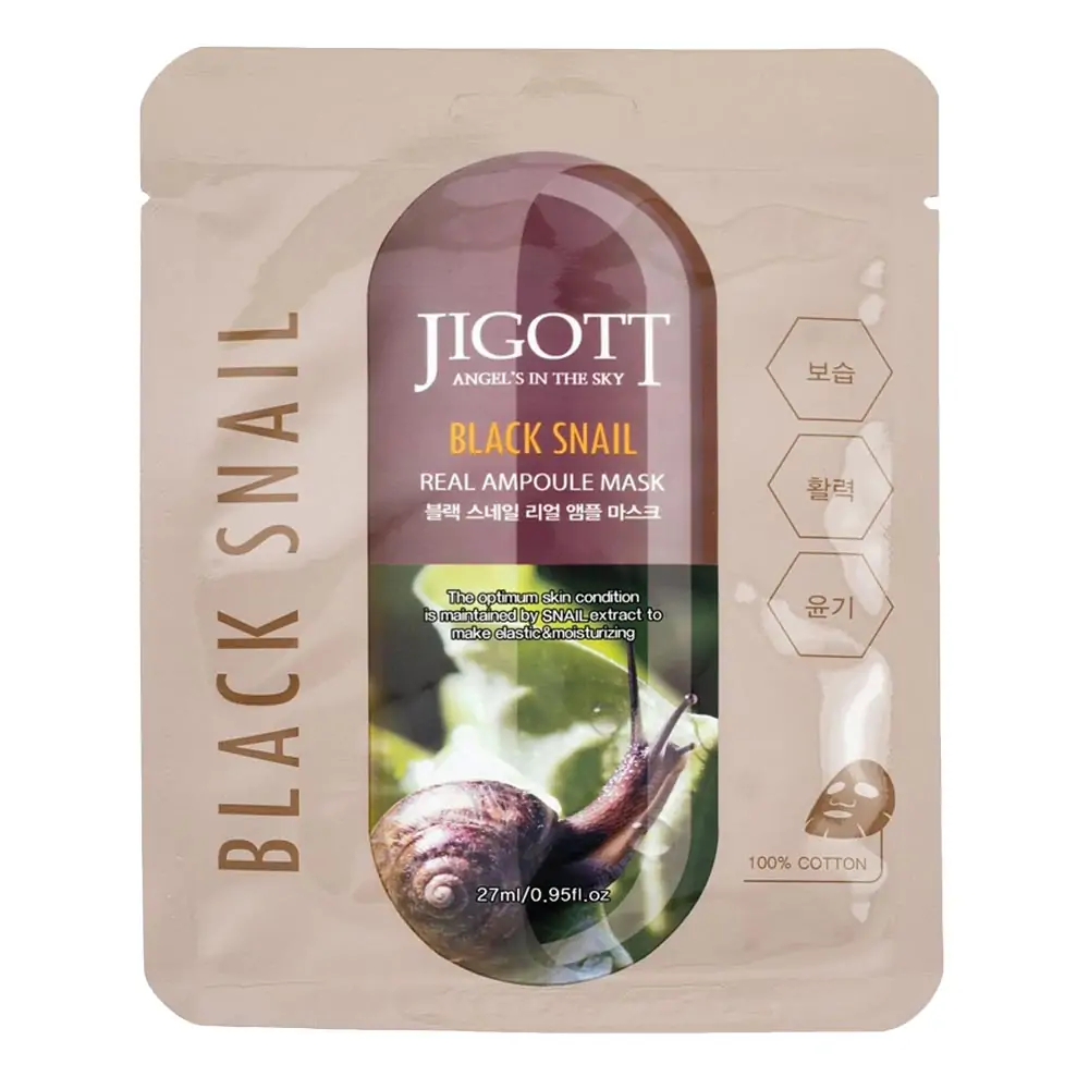 Ампульна маска з муцином чорного равлика JIGOTT BLACK SNAIL REAL AMPOULE MASK 27ml